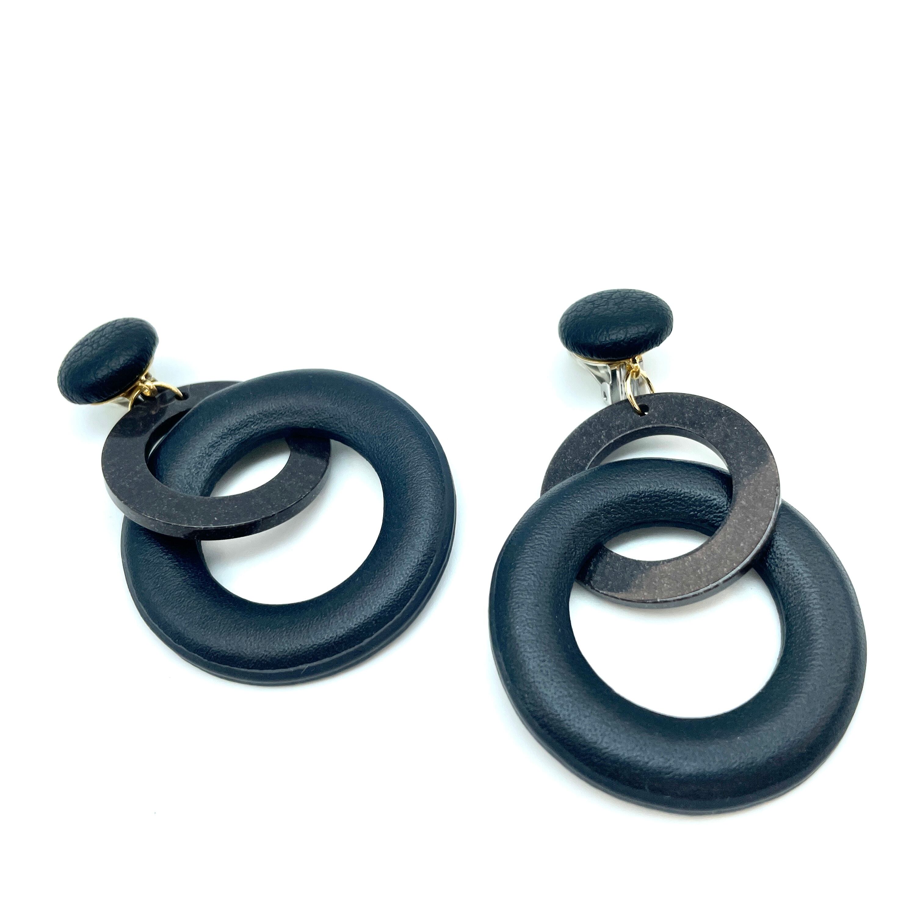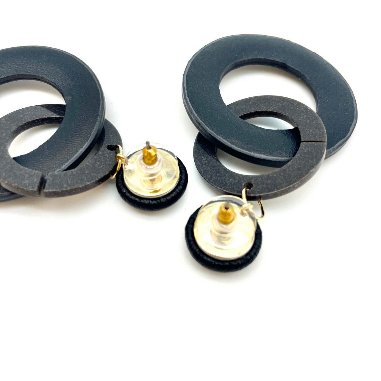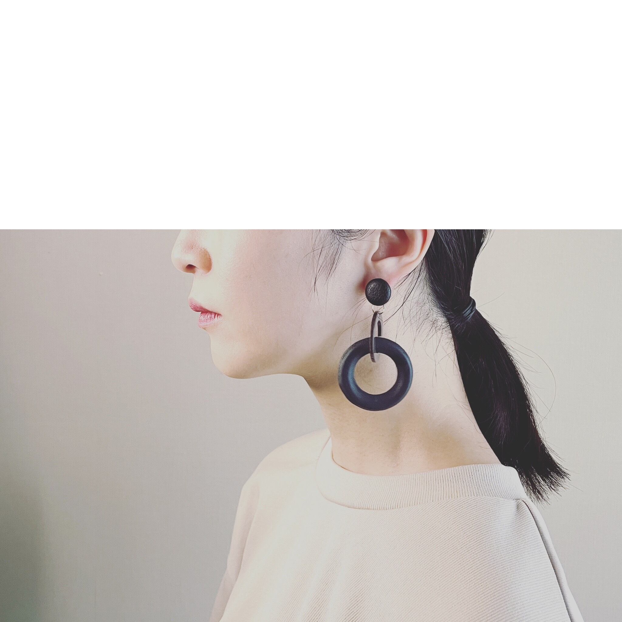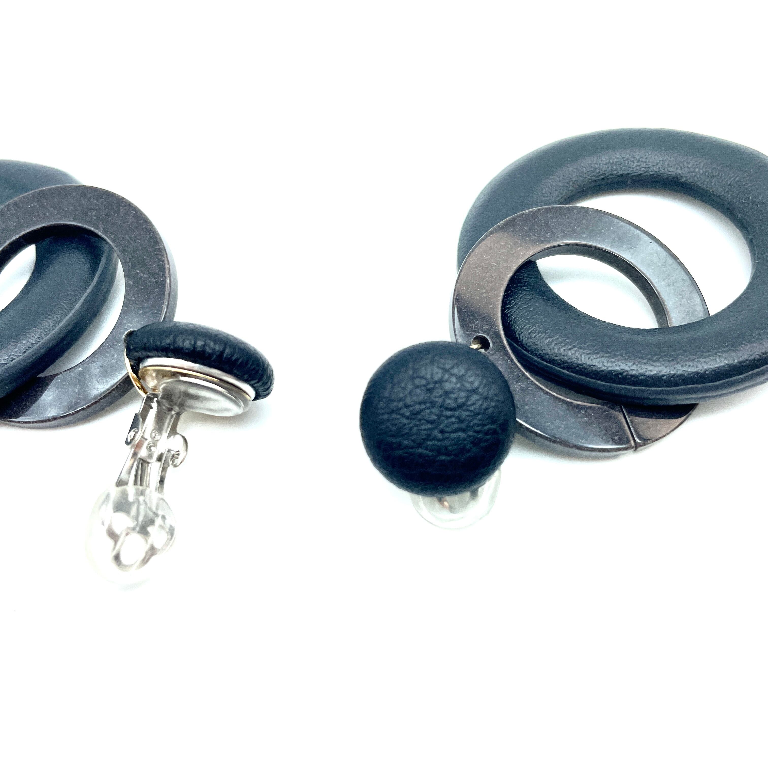 P-PI8030 leather ring ピアス、イヤリング サイズ 長さ 約7.5cm 横 約4.5cm カラー ブラック 素材 メッキ、レザー