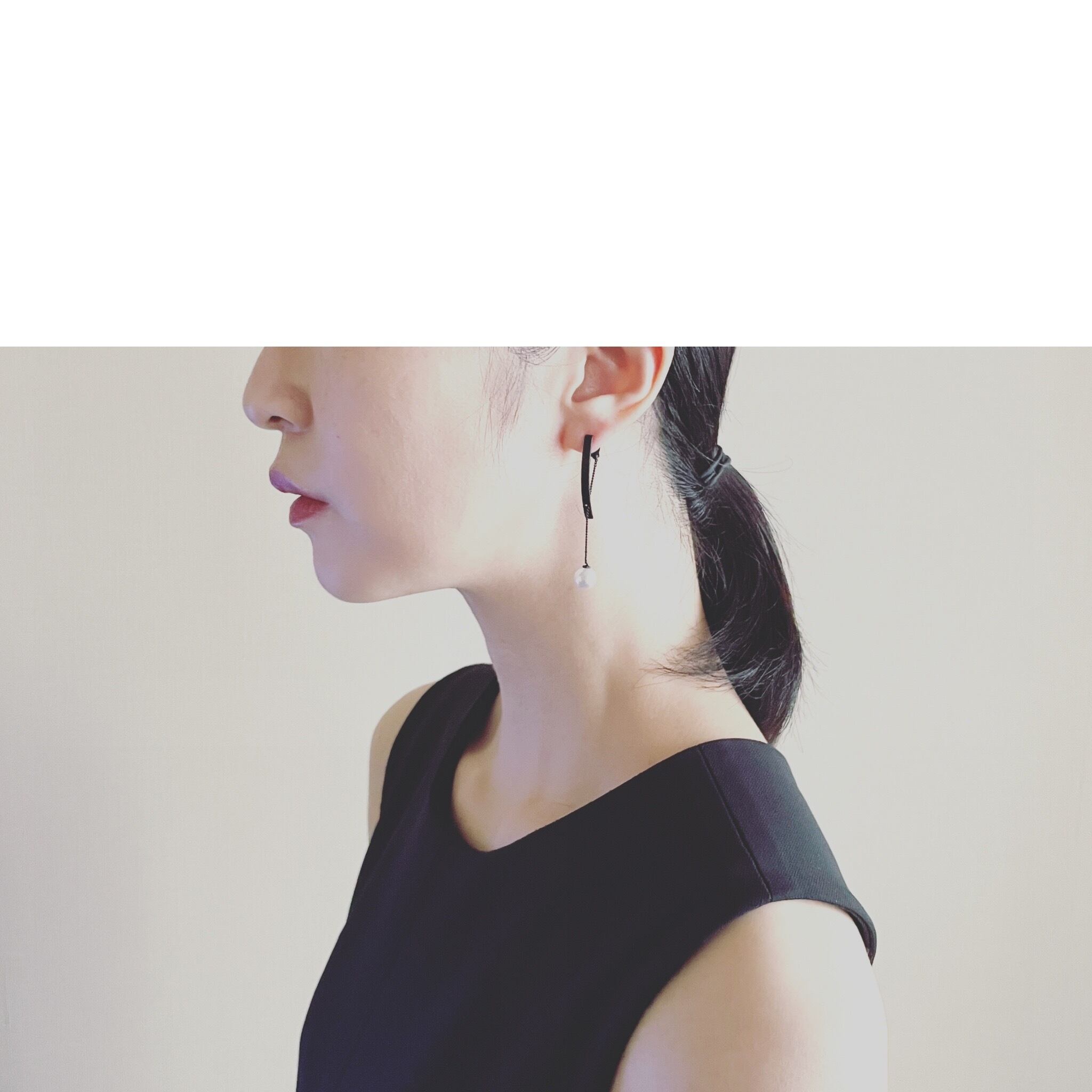 P-PI5020 pearl chain plate ピアス Black series サイズ 長さ 約5.5cm 素材 メッキ、樹脂パール